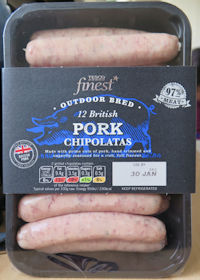 ChipolataThese 97% finest chipolatas in natural skins looked good and after cooking did indeed provide the snappy flavoursome experience I was pursuing. A very acceptable bite & chew, and the medium texture was cracking. OK a bit of weight loss still but the shrinkage was noticeably less.
